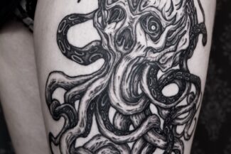 Her artistry is a catharsis that reveals the deepest corners of her soul, each piece reflecting inspiration derived from diverse sources such as macabre cinema, obscure cults, real-life crime scenes, and haunting dreams. Black Hole’s journey in mastering her craft initiated in a distinguished tattoo school in China, followed by a global pilgrimage where she embraced the role of a guest artist, enriching her style and expanding her creative horizon.